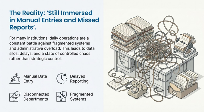 It’s a full operational ecosystem: admissions, fees, attendance, staff, parent communication, reporting, compliance. And when those pieces live in registers, spreadsheets, and scattered tools, the school doesn’t just get “busy.” It gets slower, noisier, and harder to control.