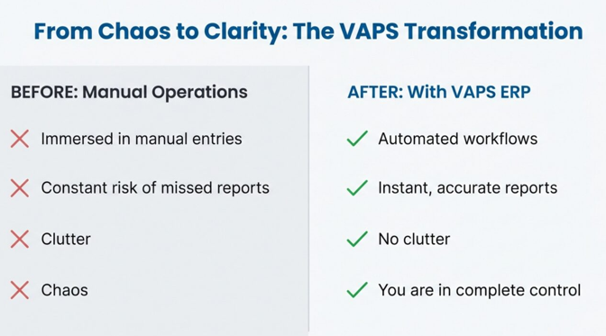What VAPS ERP covers (end-to-end)